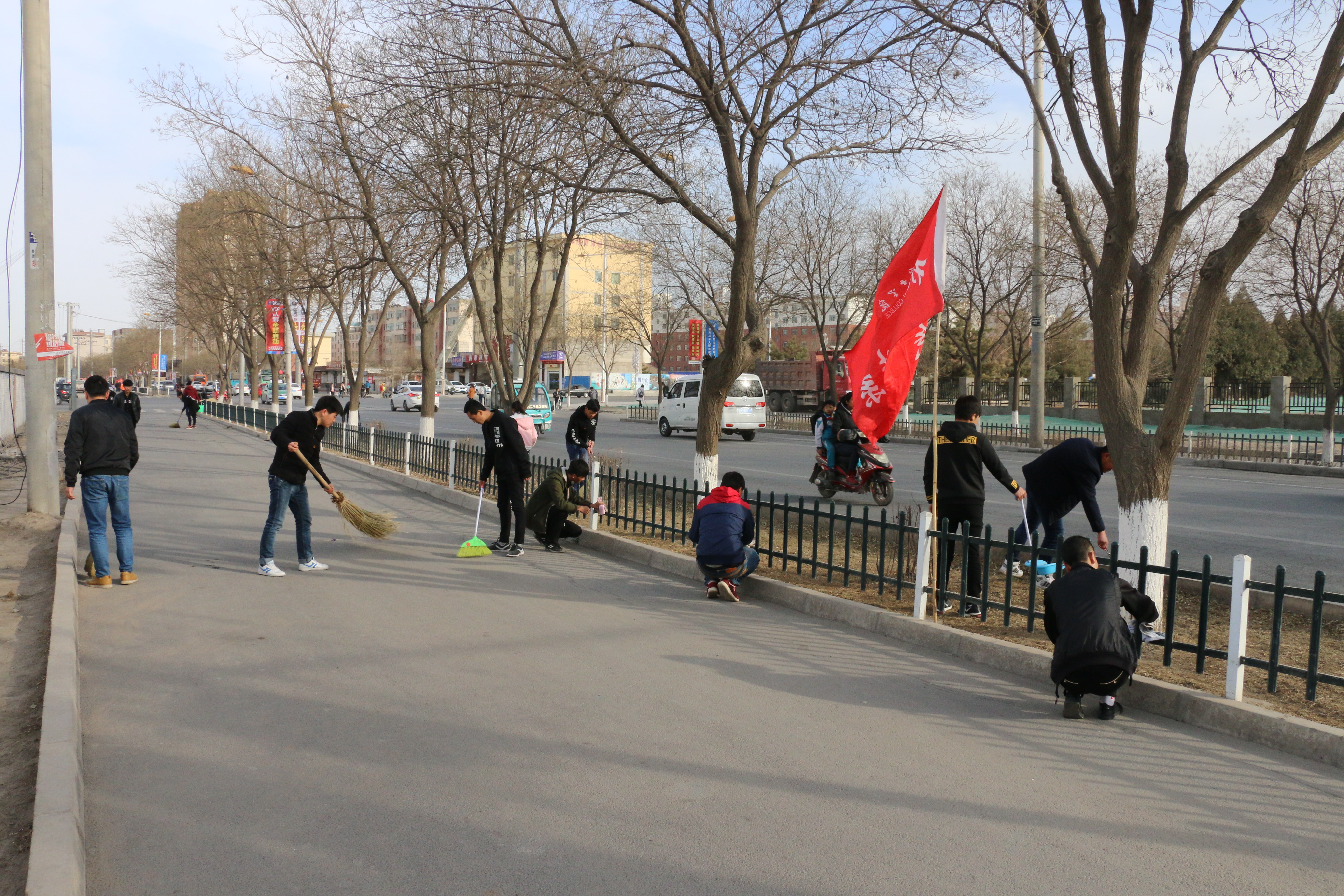 3月3日下午,現(xiàn)代農(nóng)業(yè)技術(shù)系50名志愿者在武威市文化廣場(chǎng)參加了全市志愿者集中服務(wù)日活動(dòng);學(xué)院327名青年志愿者清掃了周邊街道衛(wèi)生,集中清潔道路兩邊的柵欄、公交車(chē)站,清除小廣告,凈化了城市衛(wèi)生和生活環(huán)境。