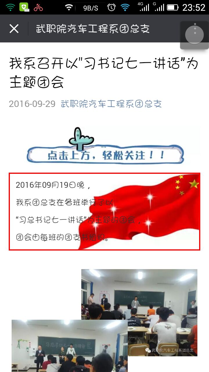 為深入推進(jìn)我系各級團(tuán)組織、團(tuán)干部和團(tuán)員青年學(xué)習(xí)習(xí)近平總書記“七一”重要講話精神,根據(jù)院團(tuán)委統(tǒng)一安排,汽車工程系團(tuán)總支于9月下旬在各班以主題團(tuán)會(huì)、座談會(huì)、黑板報(bào)等形式展開學(xué)習(xí)討論,并在系微信、微博公眾平臺上進(jìn)行了宣傳教育。
