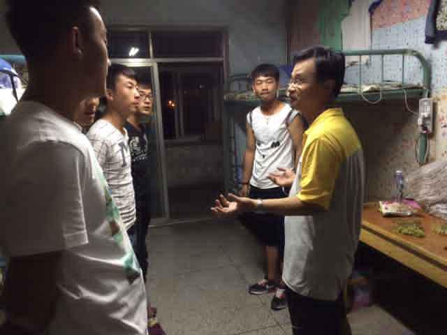 許成林及新生班主任到各個(gè)宿舍和同學(xué)們親切交談,認(rèn)真詢問(wèn)同學(xué)們是否適應(yīng)新的生活,向同學(xué)們介紹了學(xué)校吃住環(huán)境,與他們拉家常,叮囑新生注意飲食、用水、用電安全和氣候變化,要搞好宿舍之間的關(guān)系,鼓勵(lì)他們發(fā)揚(yáng)不怕苦、不怕累的精神,努力完成好軍訓(xùn)工作。