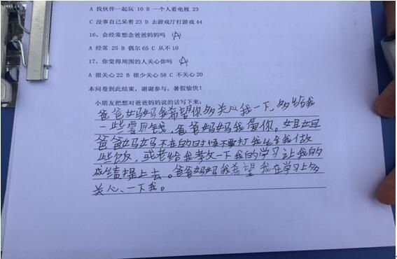 最后志愿者們坐下來相互探討提出建議:父母努力承擔(dān)孩子的教育責(zé)任。父母雖在外,但是還是應(yīng)該采取多種方式,多與孩子的溝通交流,以了解孩子的生活、學(xué)習(xí)、情感變化,比如多用電話聯(lián)系。父母是孩子的第一任老師,因此父母的教育是對孩子影響最大的,因此父母應(yīng)該多關(guān)心孩子,如果不能?;丶?,則應(yīng)該向孩子的老師說明自己的情況,了解子女的發(fā)展變化,以共同商討教育孩子的策略和方法。同時也要加強關(guān)愛留守兒童的各類社會宣傳。充分發(fā)揮各媒體的作用,使更多的人加入到對留守兒童教育問題的研究中來,使各界各類人士共同來探討和研究,從而使留守兒童教育問題得到切實的解決。