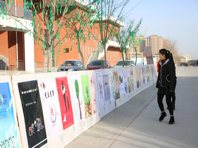 12月28日,人文藝術(shù)教育系“伸一雙手 護(hù)一片綠”主題公益海報(bào)展在大學(xué)生活動(dòng)中心前廣場(chǎng)舉行。學(xué)院宣傳統(tǒng)戰(zhàn)部部長(zhǎng)王繼林,人文藝術(shù)教育系黨總支書記胡靜峰出席開展儀式,美術(shù)教研室主任董有國(guó)及部分師生參加了展覽。