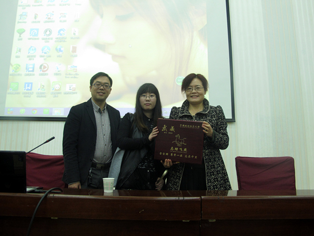 演講結(jié)束后,農(nóng)業(yè)經(jīng)濟(jì)系主任晏素珍、黨總支負(fù)責(zé)人蔡飛向殷繡嬌女士贈(zèng)送了中國(guó)旅游標(biāo)志銅奔馬模型。