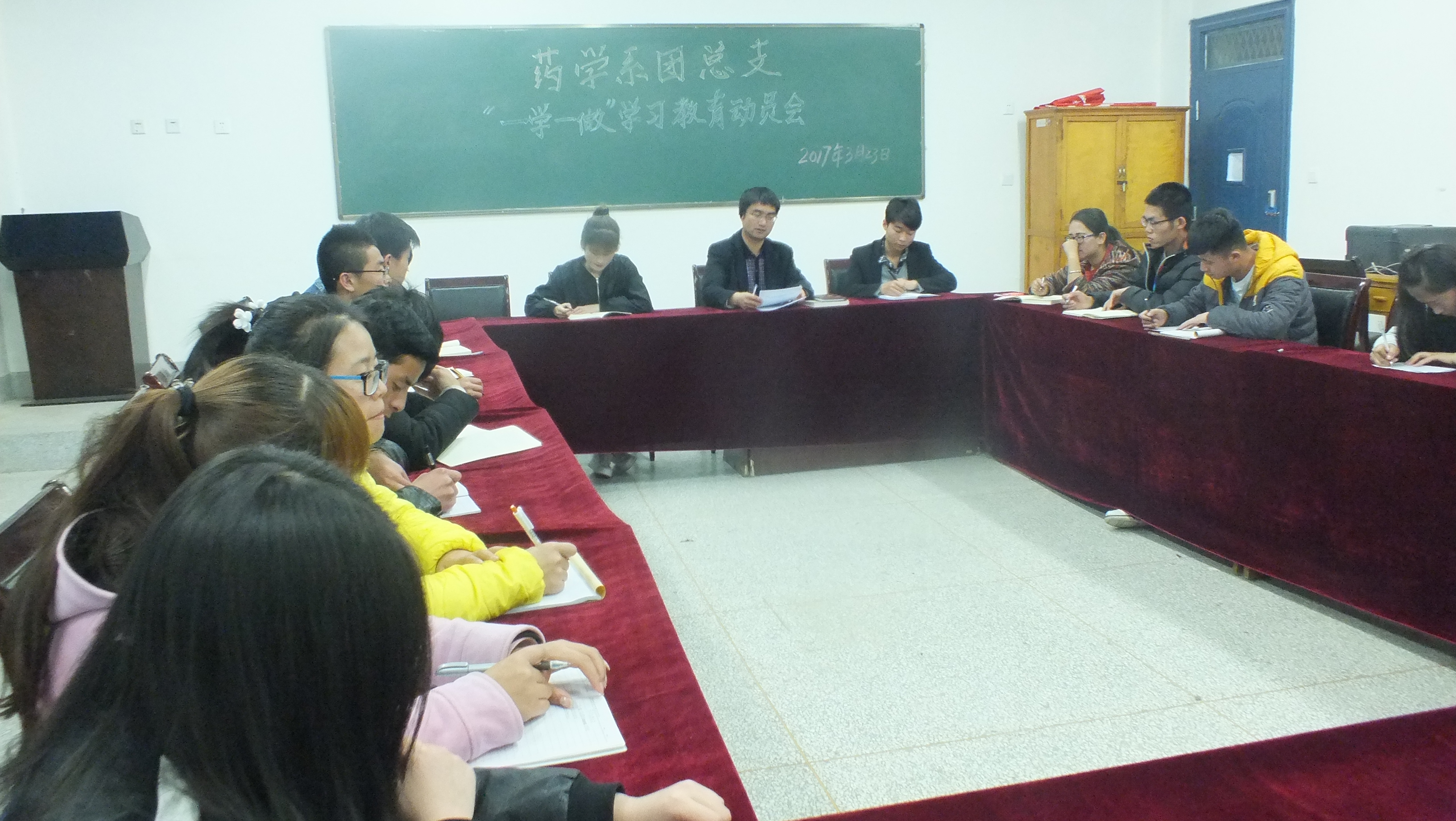 為深入學習習近平總書記系列重要講話精神,切實增強團員的先進性和光榮感, 3月23日晚,藥學系團總支在明遠樓522會議室召開“一學一做”教育實踐動員會。系團總支委員、學生會干部和各班團干部參加了此次會議,會議由系團總支書記陳輝生主持。