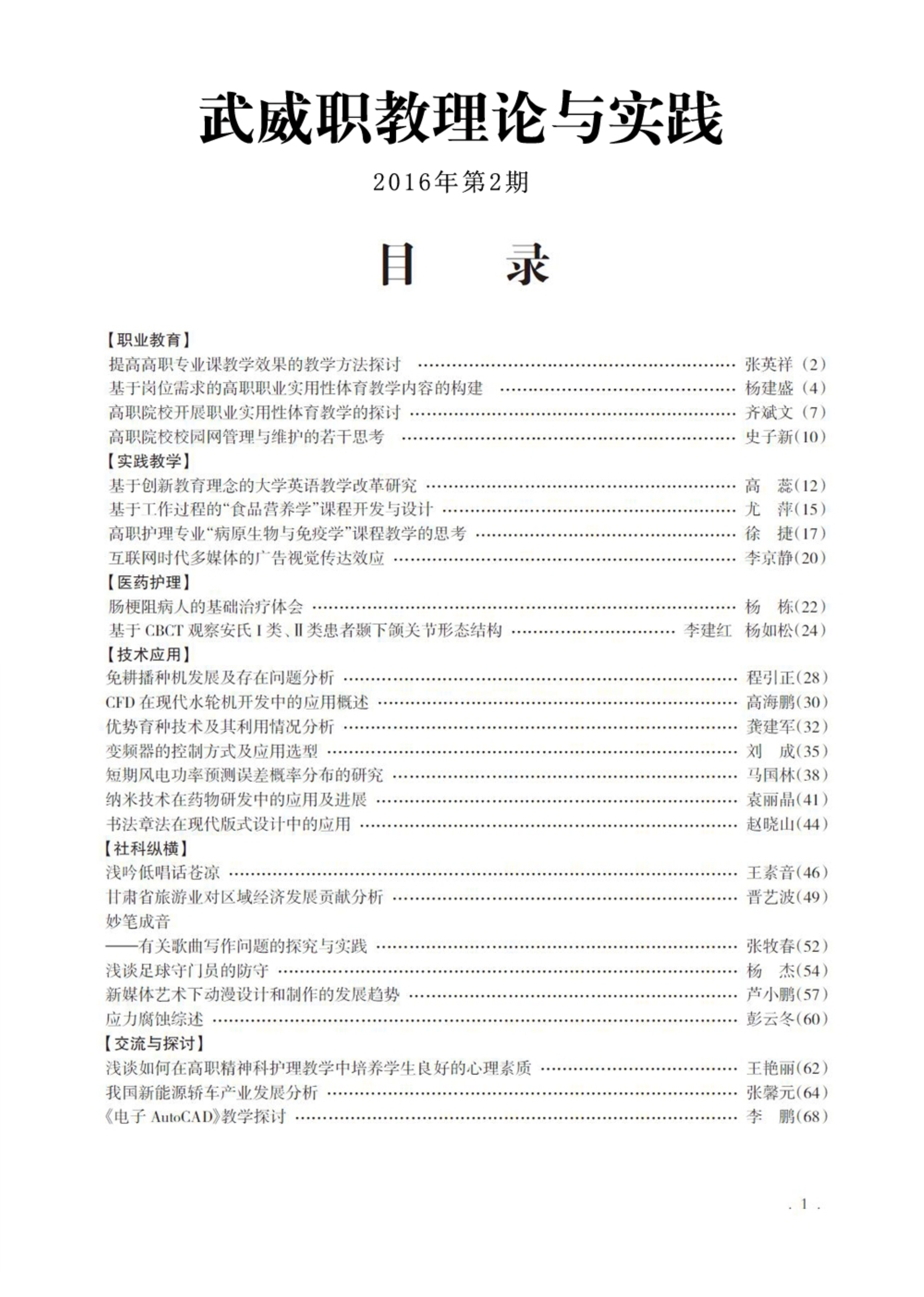 2016年第1期《武威職教理論與實(shí)踐》