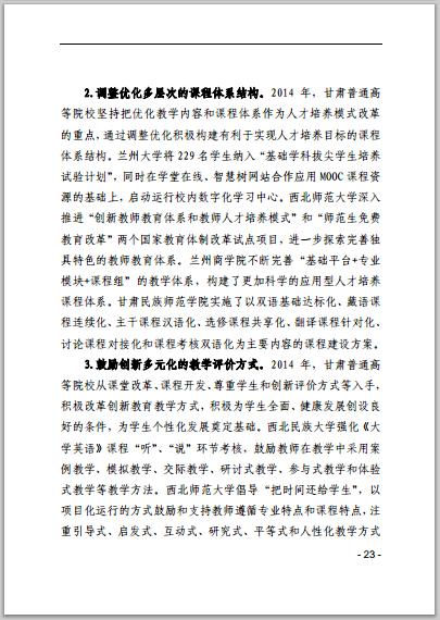 甘肅省普通高等學(xué)校2014年本科教學(xué)質(zhì)量報(bào)告