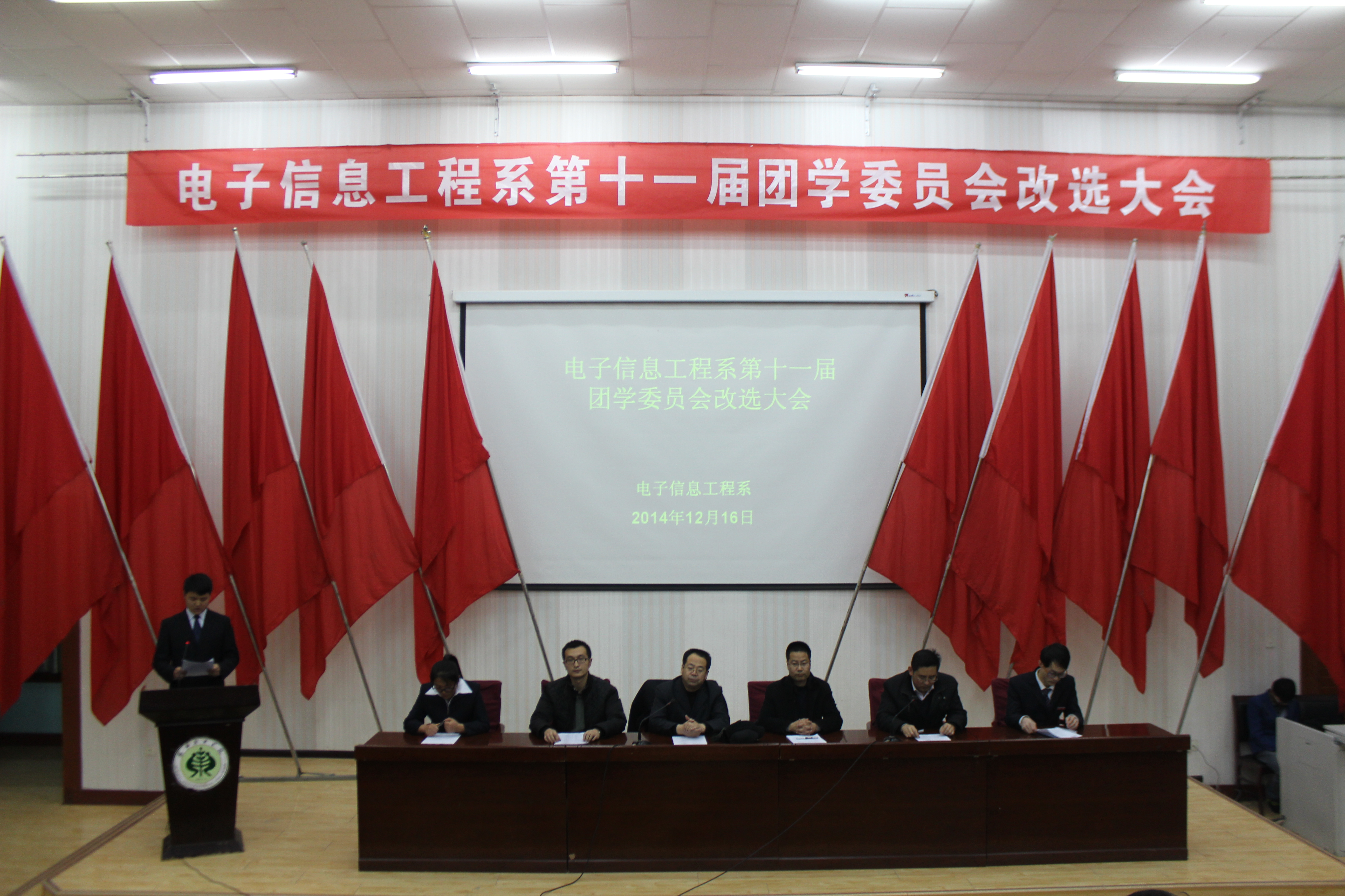 會(huì)議在莊嚴(yán)的國歌聲中拉開了帷幕。電子信息工程系團(tuán)總支書記唐宗舜老師首先致開幕詞,巨星星、李向龍同學(xué)分別代表上屆團(tuán)總支學(xué)生會(huì)做了工作匯報(bào),對上一年的工作進(jìn)行了總結(jié)。同時(shí)本次大會(huì)產(chǎn)生了第十一屆團(tuán)、學(xué)委員會(huì)成員。新當(dāng)選學(xué)生會(huì)主席陳利龍同學(xué)和新當(dāng)選團(tuán)總支副書記王鵬飛同學(xué)進(jìn)行了就職演講。