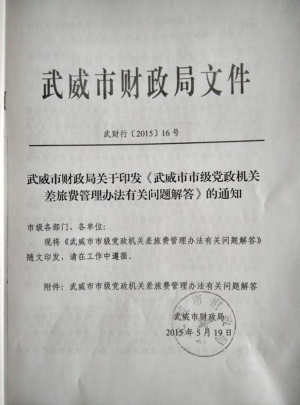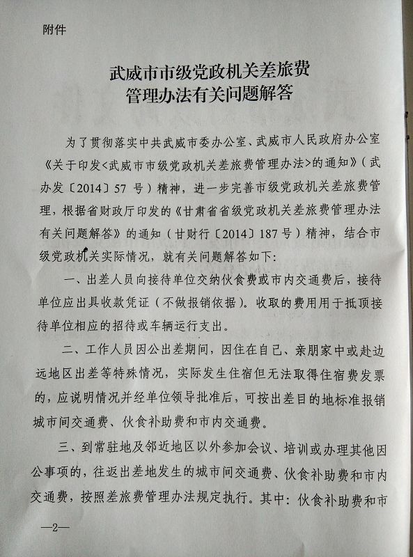 <轉(zhuǎn)發(fā)>武威市市級(jí)黨政機(jī)關(guān)差旅費(fèi)管理辦法有關(guān)問題解答