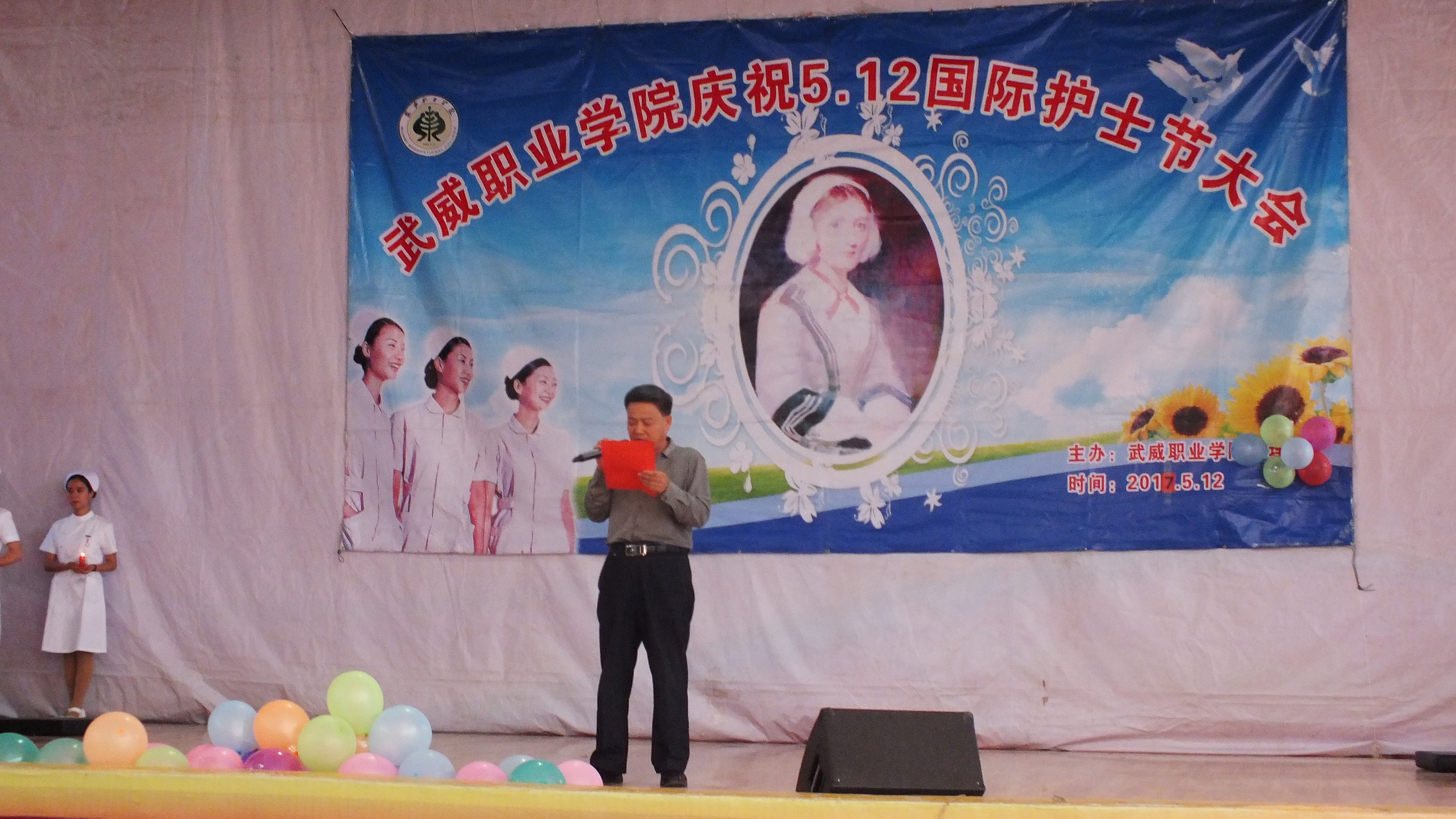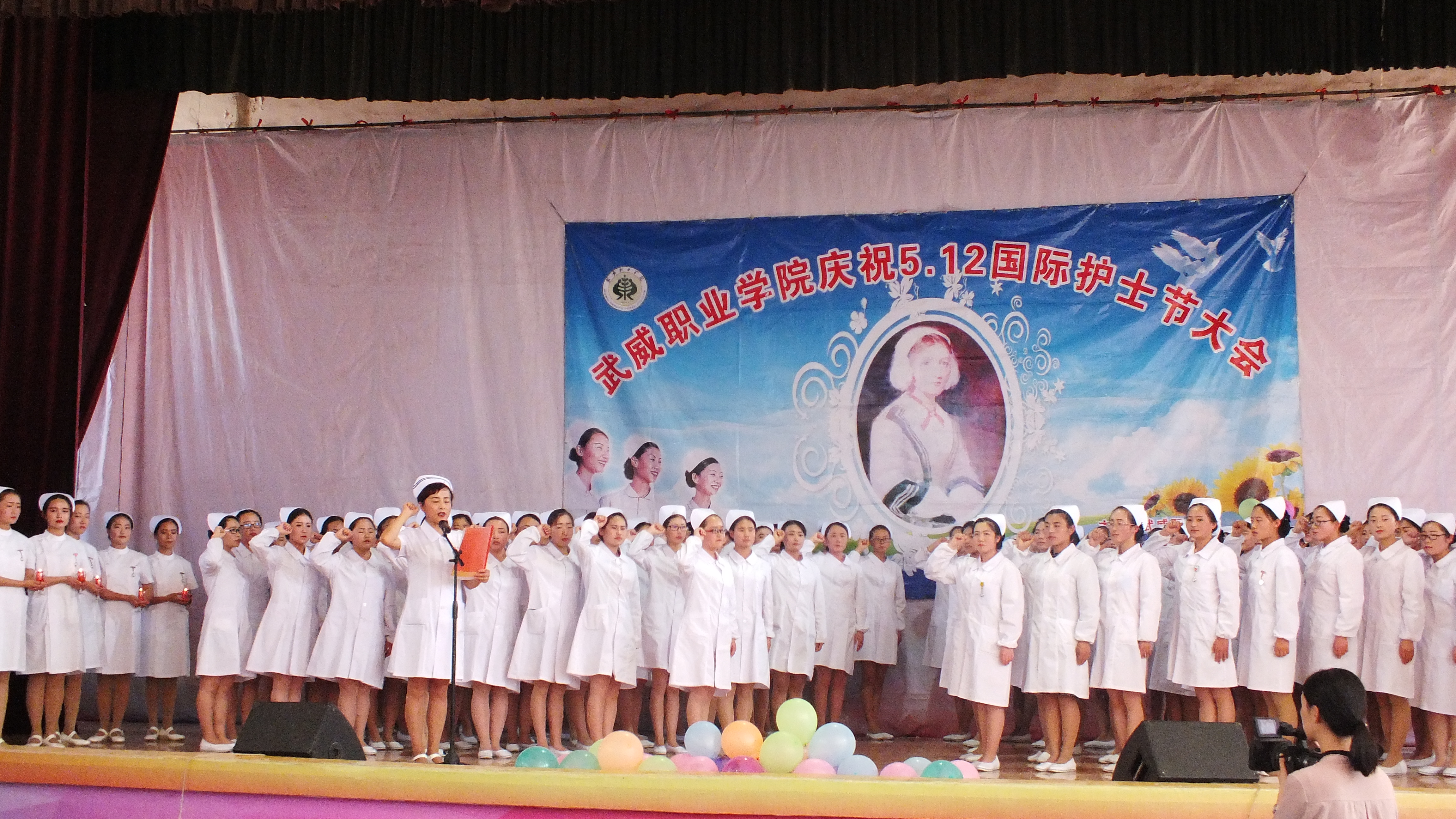 為繼承和弘揚(yáng)南丁格爾精神,積極推動(dòng)護(hù)理專業(yè)人才建設(shè)和職業(yè)內(nèi)涵塑造,展示我院護(hù)理專業(yè)師生風(fēng)采,在第106個(gè)國(guó)際護(hù)士節(jié)來臨之際,學(xué)院于5月12日下午在大禮堂隆重舉辦了慶祝國(guó)際護(hù)士節(jié)活動(dòng),武威市衛(wèi)生計(jì)生委副主任潘玉華、學(xué)院黨委副書記趙明、紀(jì)委書記張富國(guó)、副院長(zhǎng)王永緒、直屬附屬醫(yī)院護(hù)理部主任、相關(guān)處室領(lǐng)導(dǎo)及護(hù)理系全體師生1200余人參與了本次活動(dòng)?;顒?dòng)包括護(hù)士授帽儀式,護(hù)理實(shí)踐技能操作表演,第四屆護(hù)理技能大賽頒獎(jiǎng),慶祝“5.12”護(hù)士節(jié)文藝演出等內(nèi)容。