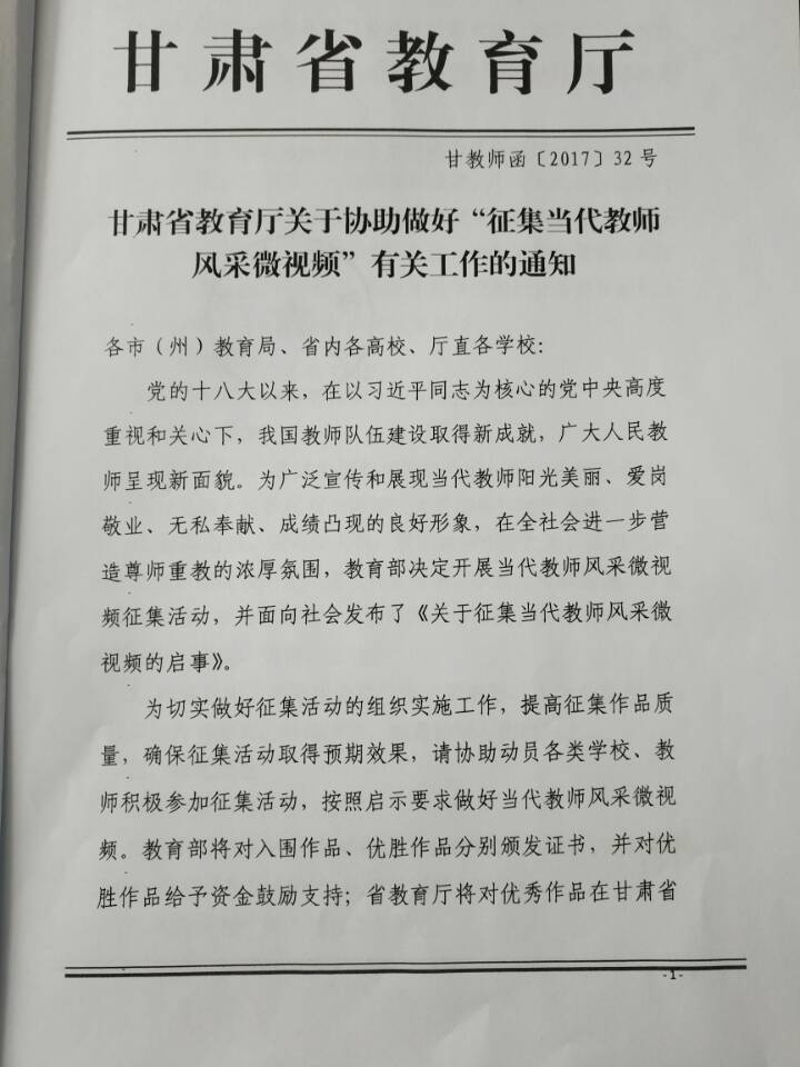 關(guān)于做好省教育廳“征集當(dāng)代教師風(fēng)采微視頻”有關(guān)工作的通知