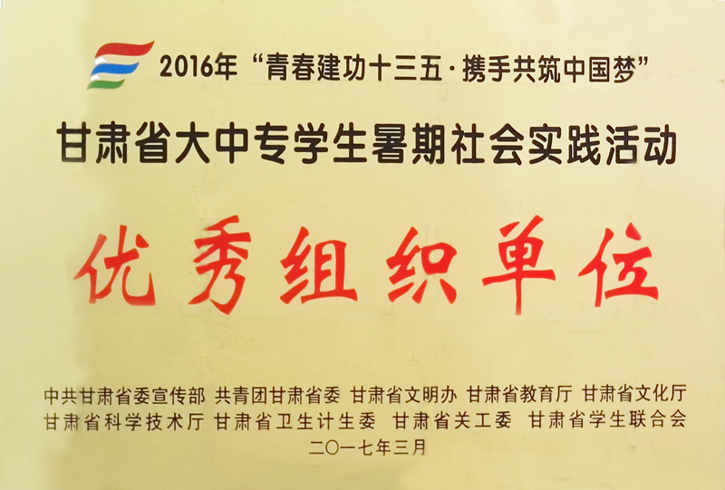 學(xué)院團(tuán)委被省委宣傳部、團(tuán)省委、省教育廳等九個(gè)部門評為2016年甘肅省大中專學(xué)生暑期社會(huì)實(shí)踐活動(dòng)“優(yōu)秀組織單位”,五個(gè)實(shí)踐團(tuán)隊(duì)被評為省級“優(yōu)秀團(tuán)隊(duì)”,五名同志被評為“先進(jìn)個(gè)人”,五名教師被評為 “優(yōu)秀指導(dǎo)教師”。