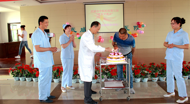 致辭后,毛照海與腎友代表共同舉行了切蛋糕儀式。護(hù)士們推著小車,把一塊塊象征幸福美滿的蛋糕和水果送到了腎友們的面前,讓他們品償生活的甜蜜。