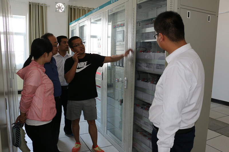 全體教師在電站技術(shù)人員帶領(lǐng)下,依次深入并網(wǎng)發(fā)電控制室、繼電保護室、SVG室(無功功率補償)、SVG聯(lián)絡(luò)變壓器、高壓開關(guān)站以及光伏陣列進行觀摩學習,在并網(wǎng)發(fā)電控制室觀摩監(jiān)控系統(tǒng)、設(shè)備運行等情況。通過現(xiàn)場培訓學習,老師們近距離熟悉了光伏支架,組件陣列、逆變器、控制器、匯流箱、配電柜等設(shè)備的安裝施工,學習了光伏系統(tǒng)集成設(shè)計及并網(wǎng)技術(shù)等,特別是對光伏電站運行安全操作規(guī)程進行了系統(tǒng)掌握。