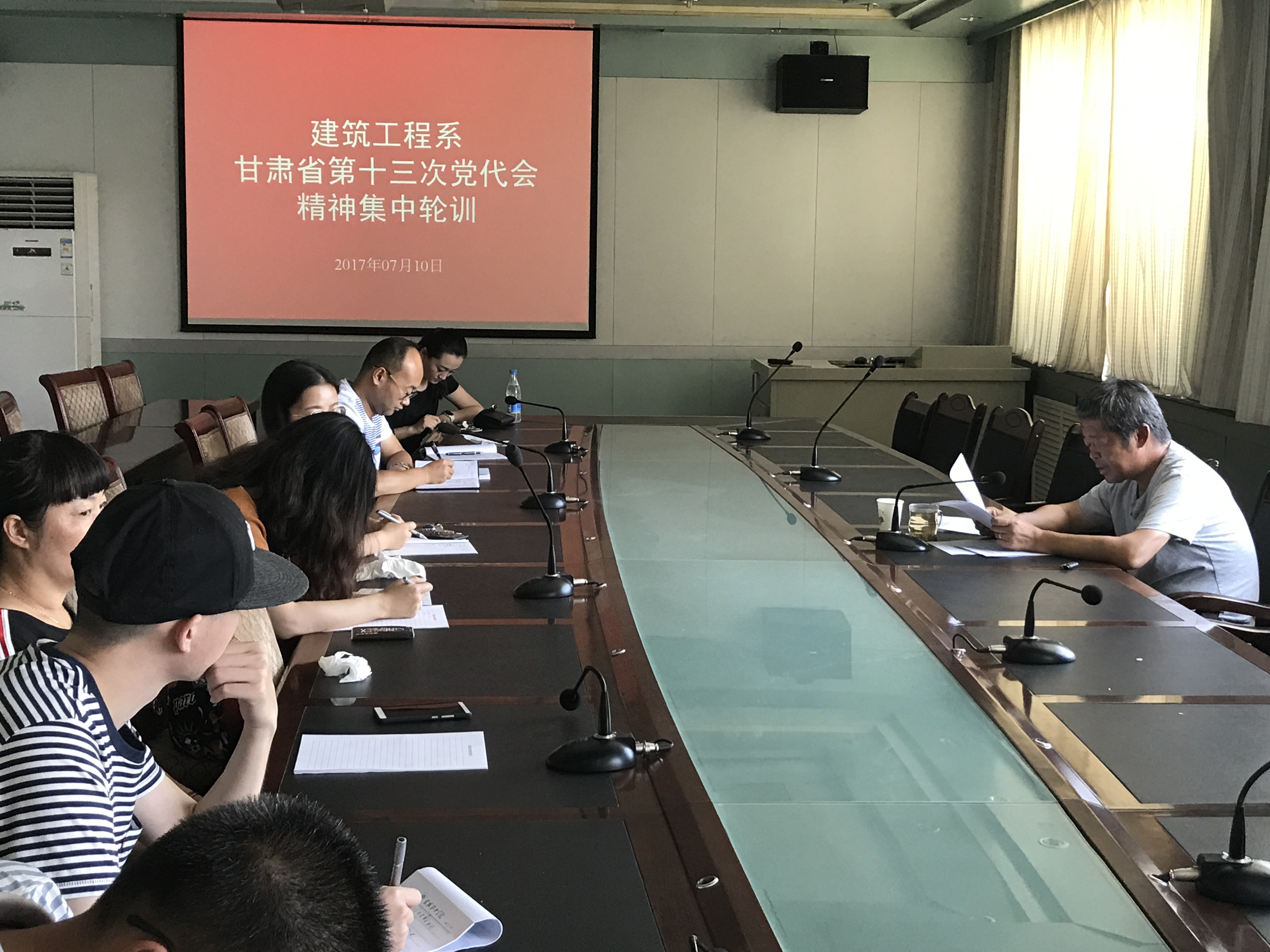 為學(xué)習(xí)貫徹落實(shí)好中國(guó)共產(chǎn)黨甘肅省第十三次代表大會(huì)精神和市委四屆四次全體(擴(kuò)大)會(huì)議精神,根據(jù)學(xué)院黨委安排,7月10日—12日,建筑工程系黨總支組織全體黨員、專業(yè)教師17人進(jìn)行了集中輪訓(xùn)。