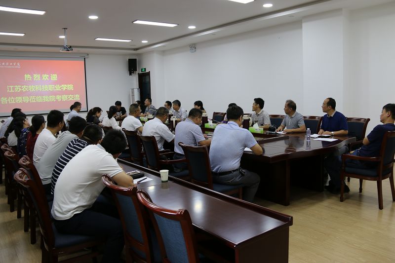 7月31日,江蘇農(nóng)牧科技職業(yè)學(xué)院副院長鄭義一行11人到我院考察交流。我院副院長王永緒、田迎春熱情接待了來賓,會(huì)議由副院長田迎春主持,學(xué)院相關(guān)部門負(fù)責(zé)人參加了交流活動(dòng)。