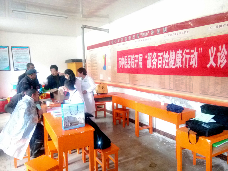 走訪調(diào)研活動(dòng)結(jié)束后,醫(yī)務(wù)人員在村會(huì)議室開展送醫(yī)送藥義診活動(dòng)。村民們踴躍前來診病,都說城里的大夫好,不但免費(fèi)為我們開方,而且還免費(fèi)送藥。