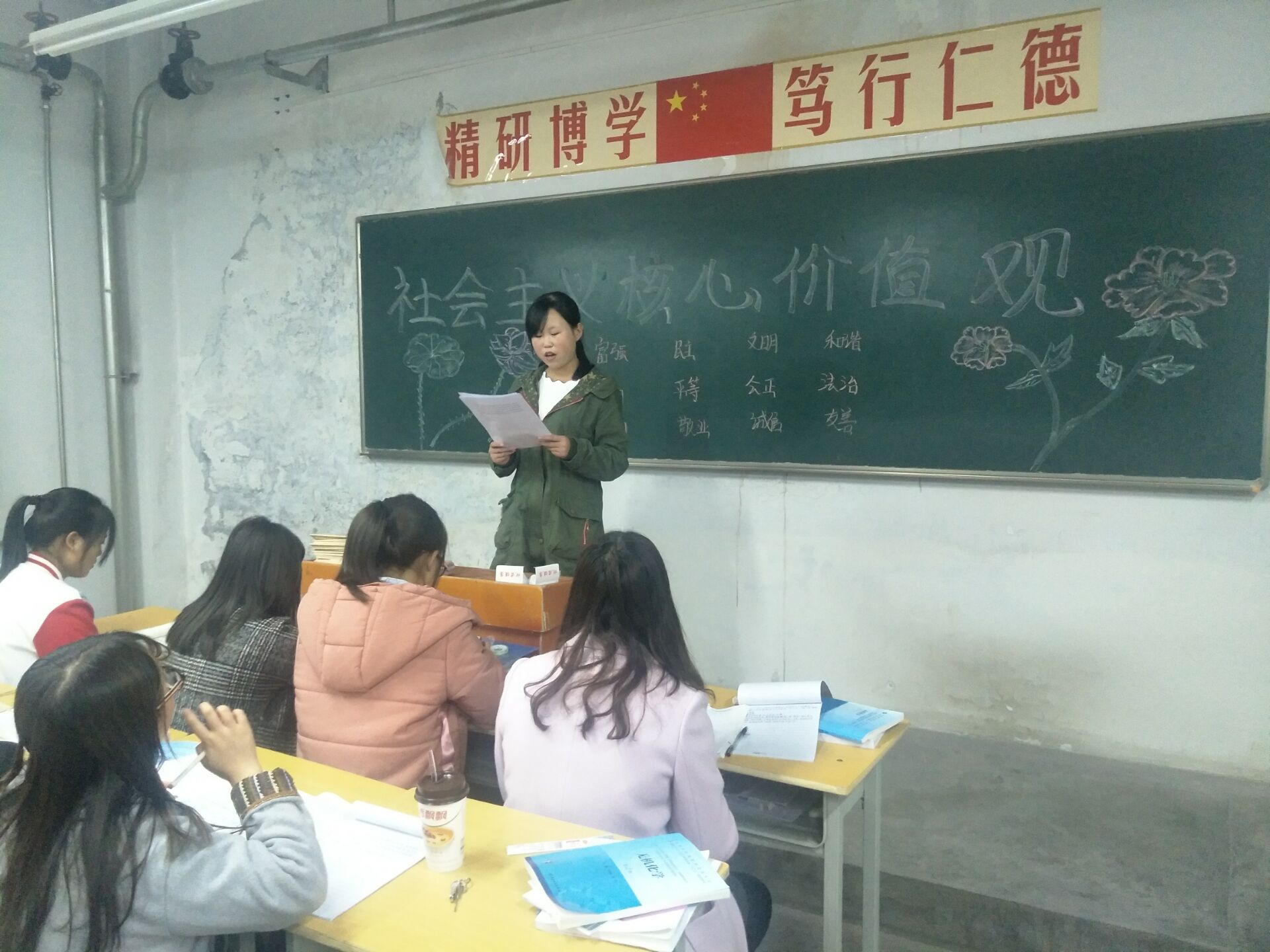 ?根據(jù)藥學(xué)系對社會主義核心價值觀主題宣傳教育創(chuàng)建工作的安排,11月6日,利用晚自習(xí),17級藥學(xué)5班召開主題班會,深入學(xué)習(xí)宣傳社會主義核心價值觀的概念內(nèi)涵、發(fā)展歷程、價值意義、基本原則、踐行路徑、實踐活動和“24字人知人曉”等內(nèi)容。同時,將“24字內(nèi)容”在教室、宿舍張貼宣傳,做到社會主義核心價值觀進(jìn)教室、進(jìn)宿舍、進(jìn)頭腦。通過學(xué)習(xí),對“24字人知人曉”工程做到了班級全覆蓋,班級學(xué)生對社會主義核心價值觀內(nèi)涵的認(rèn)識和理解進(jìn)一步加深。今后,將根據(jù)系上安排,不斷將培育和踐行社會主義核心價值觀工作引向深入。